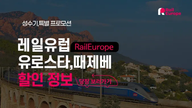 레일유럽의 할인 프로모션에 관해 알려드립니다. 이번 할인 프로모션은 번개처럼 뜨고 번개처럼 사라질 예정이니 놓치지 마세요! 여행 일정을 미리 확인하고 예약해보세요.